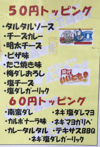 からあげ大盛 80円  特盛 160円  鬼盛 240円